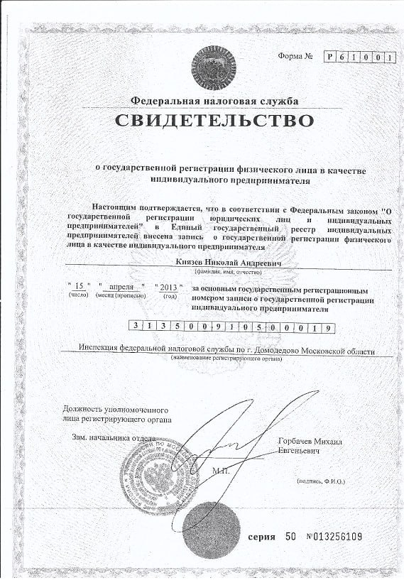Получатель: Индивидуальный предприниматель Князев Николай Андреевич